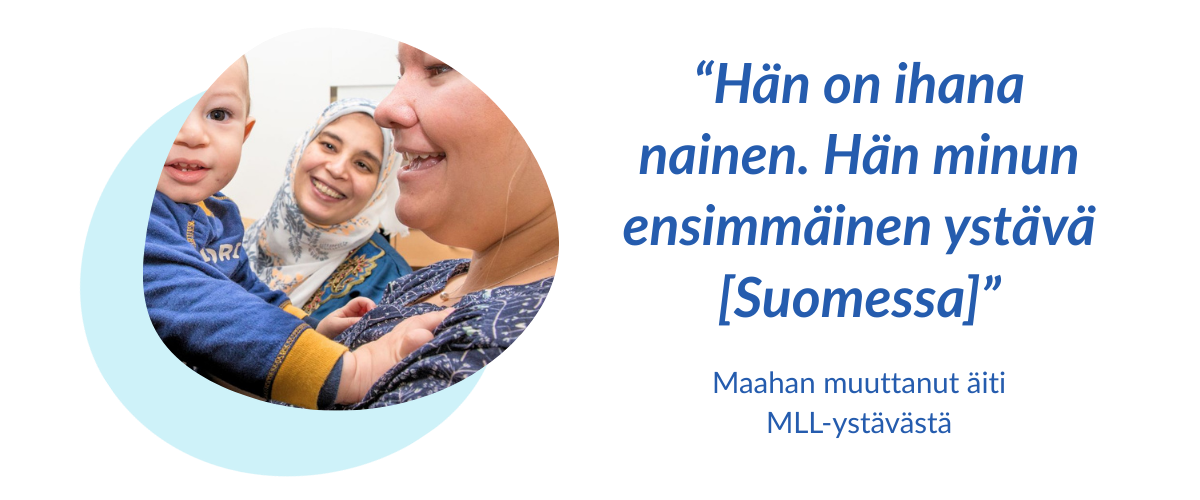 Samalla kerromme MLL Ystäväksi maahanmuuttajaäidille -toiminnasta, jossa vapaaehtoiset tuovat tukea kielen oppimiseen, ystävyyttä ja iloa maahan muuttaneiden äitien arkeen ja rakentavat siltoja ihmisten välille.