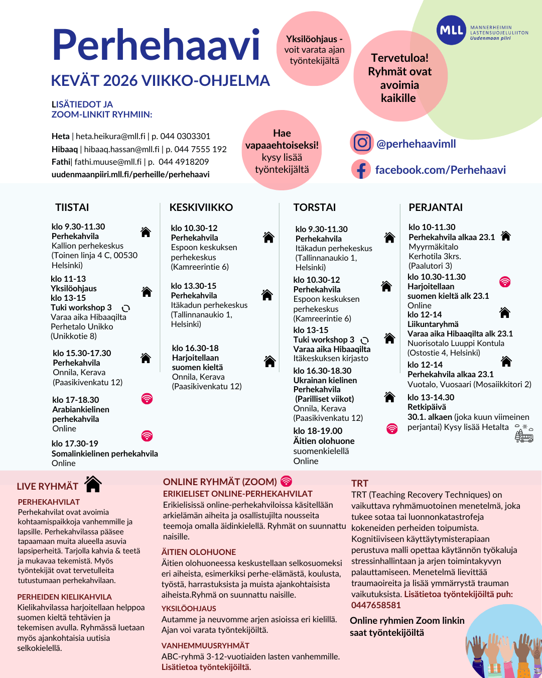 Tervetuloa mukaan toimintaamme. Lisätietoja ryhmistä ohjaajilta.