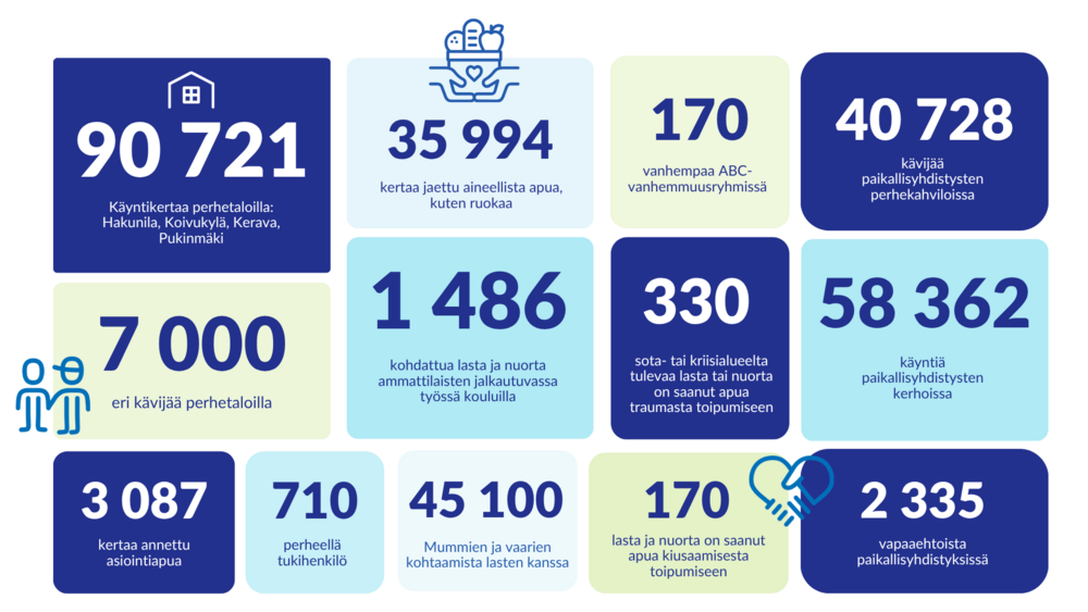 yli 90 000 käyntiä perhetaloillamme, josta perheet saavat monenlaista apua ja tukea saman katon alta